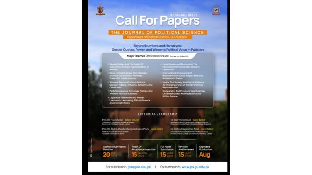 Call for Papers Special Issue: Beyond Numbers and Narratives: Gender Quotas, Power, and Women’s Political Voice in Pakistan